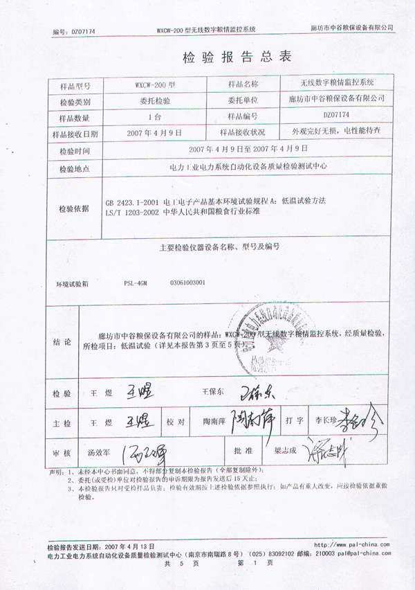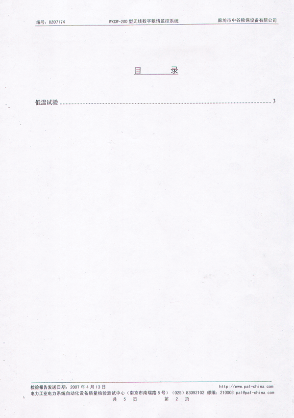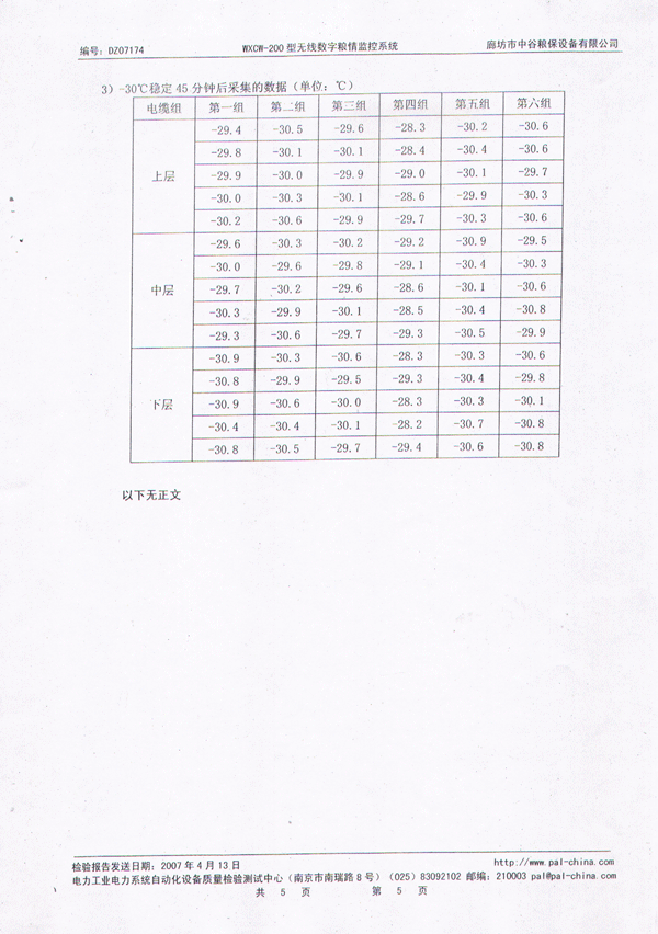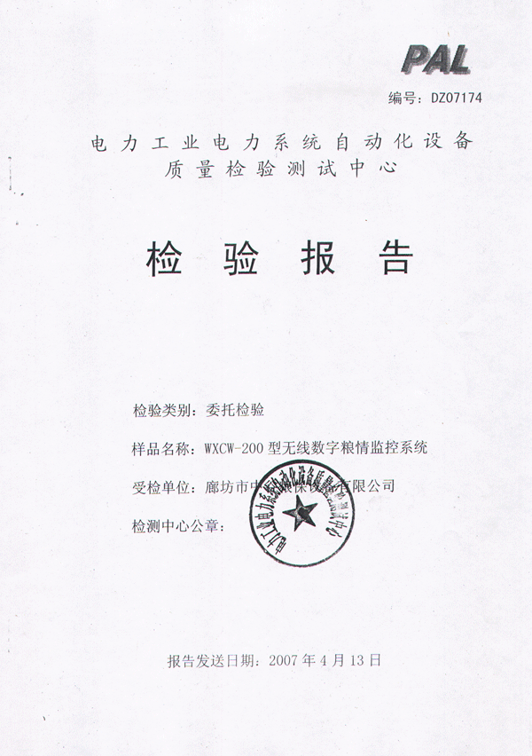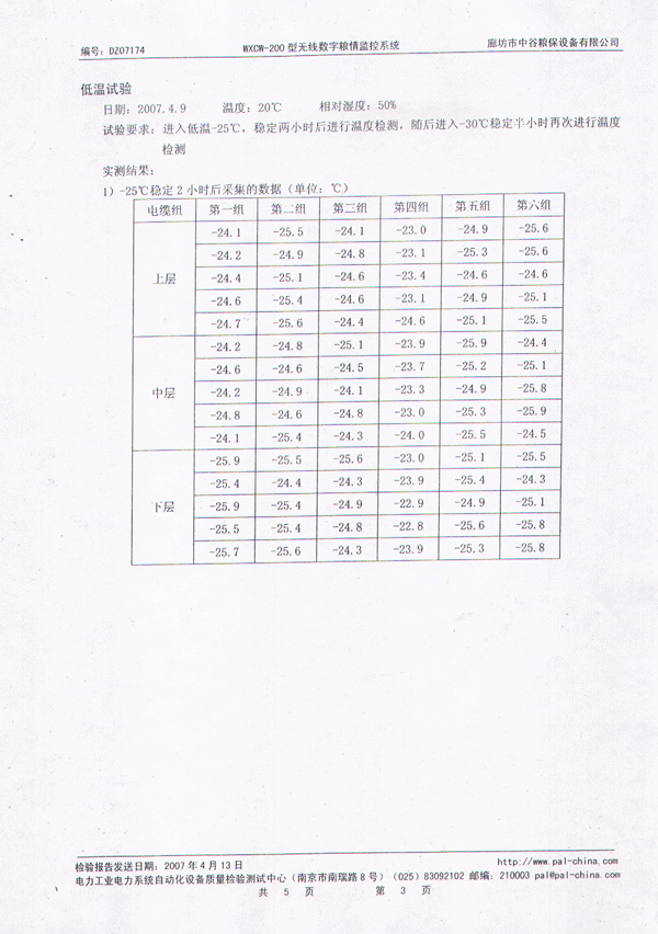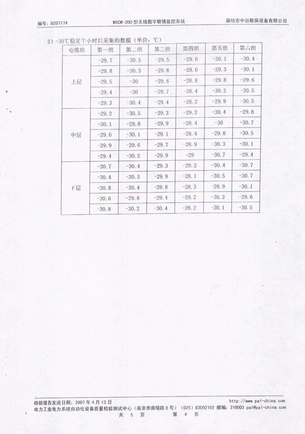 中谷糧保無線數(shù)字糧情監(jiān)控系統(tǒng)檢測報告